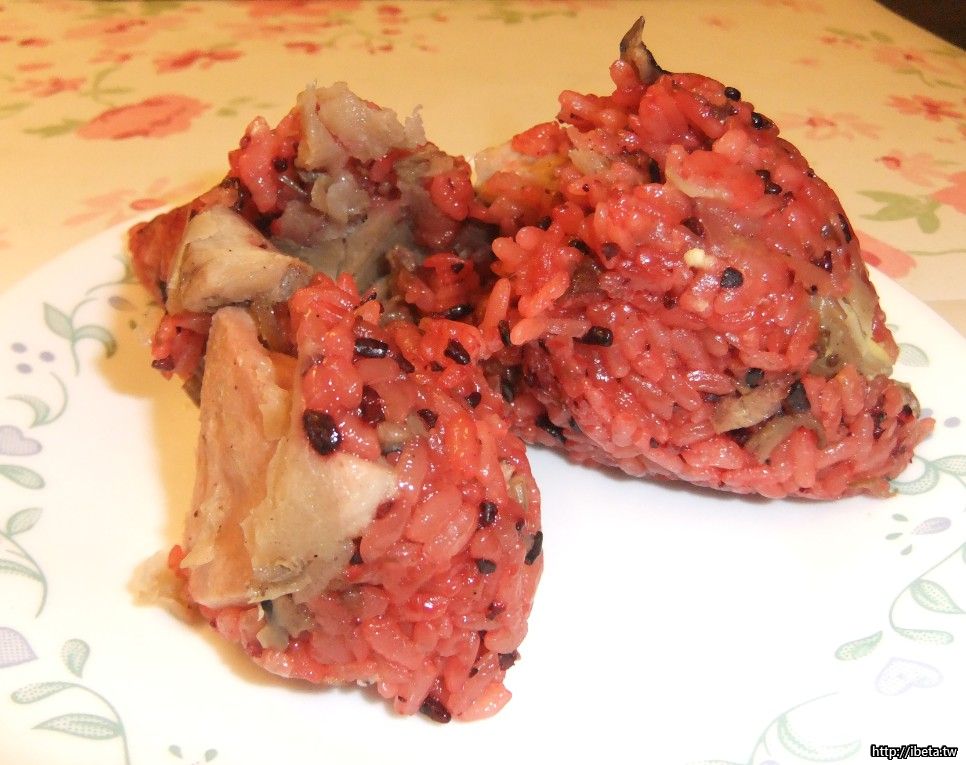 製作方式:糯米炒至半熟後,與炒過的餡料一同包進粽葉後,再入鍋蒸熟。