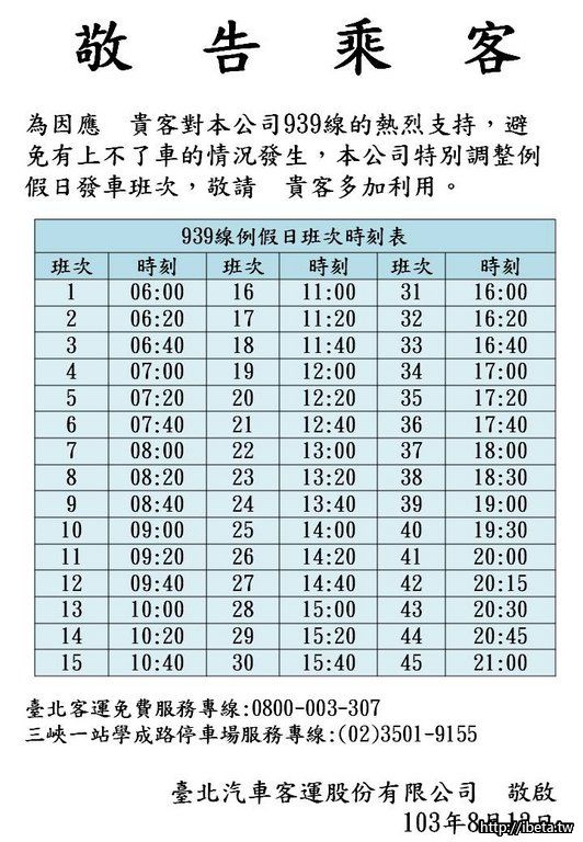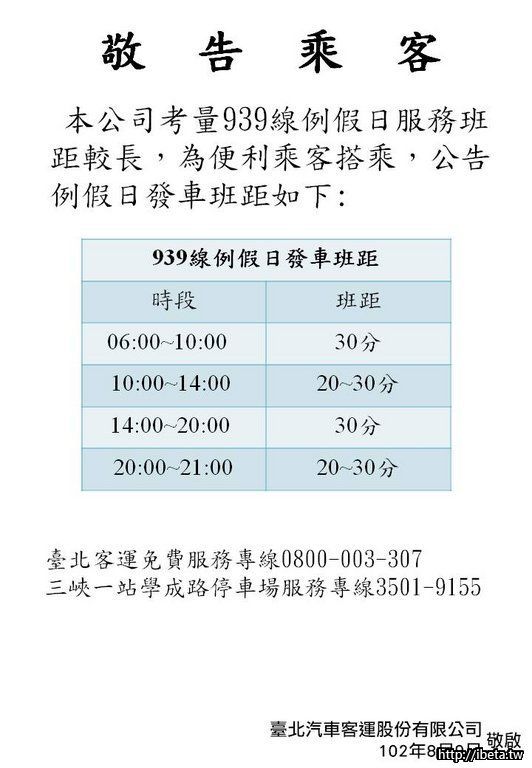 939增加2-4班(因為路程太遙遠)