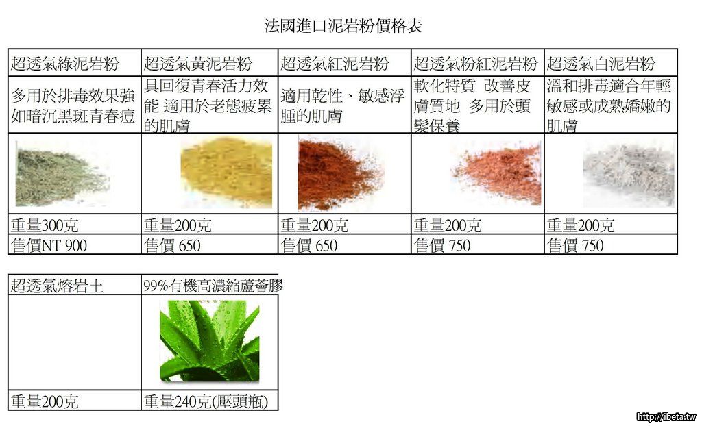 面膜:泥岩粉3大匙+花水或純水2大匙+蘆薈膠1茶匙~1匙 純精油1D~2D