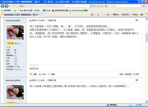 PS像我要罵男人,也是直接來,我討厭拐彎抹角或是暗喻...因為會有很多不聰明的人看不懂!!而且要暗喻也得有些水準~免的失了我們女性的優雅{:4_102:}