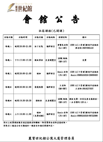 讓大家都能知道世紀館目前所有開課的情況,謝謝.