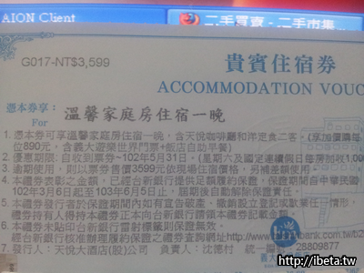 此卷買的時候原本有送平日升等幸福家庭房、天悅咖啡廳和洋定食二客,
